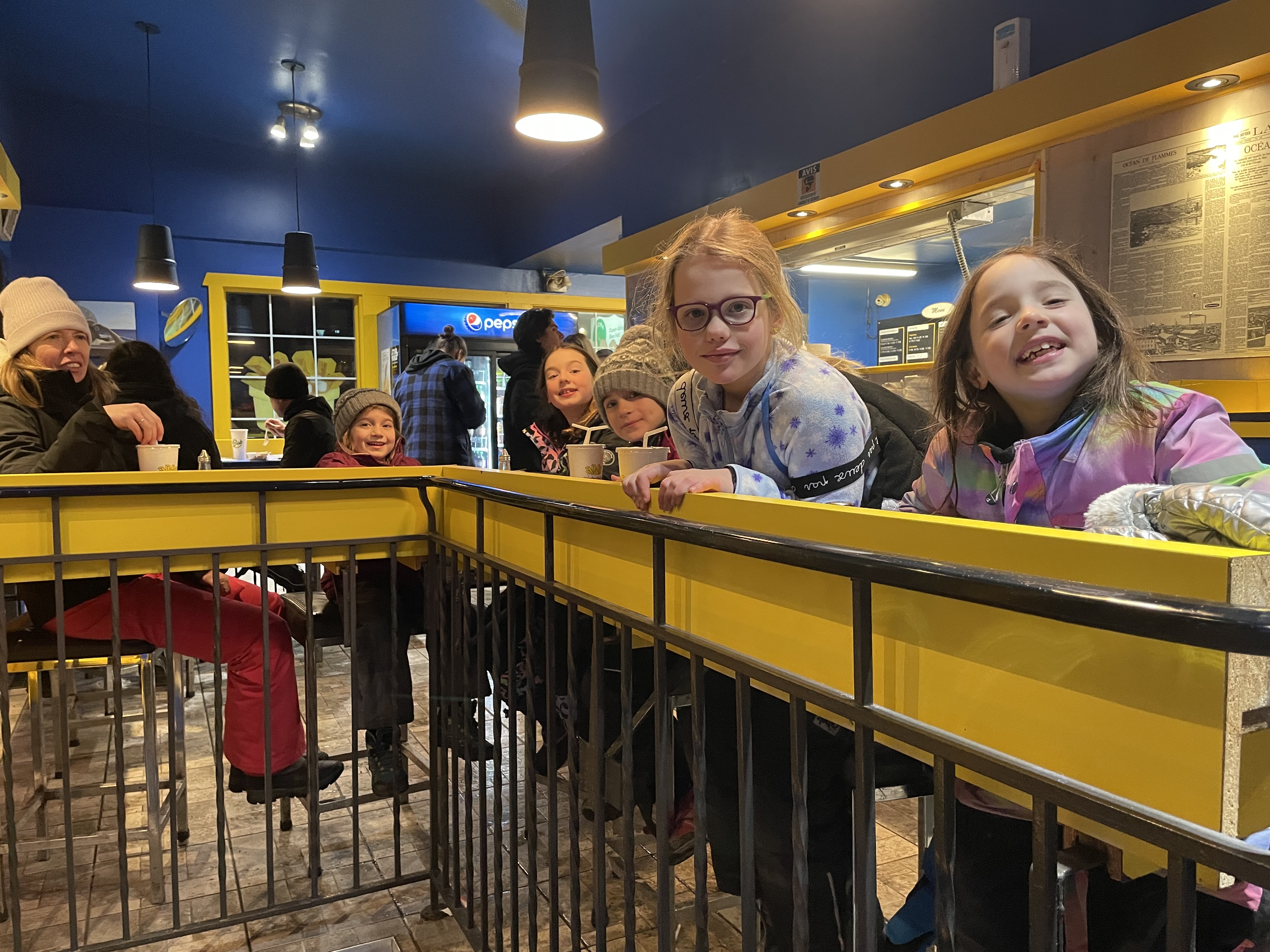 We started the year off up to many of our same old tricks. Zoe skiing and Ewa and I snowboarding. Zoe is improving as kids tend to improve at things they practice– by leaps and bounds! Ewa and I have come a way fair way also– there have been some good genuine “this is enjoyable, and we won’t die today” afternoons on the hill. We’re snowboarders now. It has even become a bit of a social thing– we’ve been up on the hill with Zoe and her friends and their parents (our friends). There was a pretty good Après Ski at the Pataterie Hulluoise one night– it is a small restaurant and we took it over!
